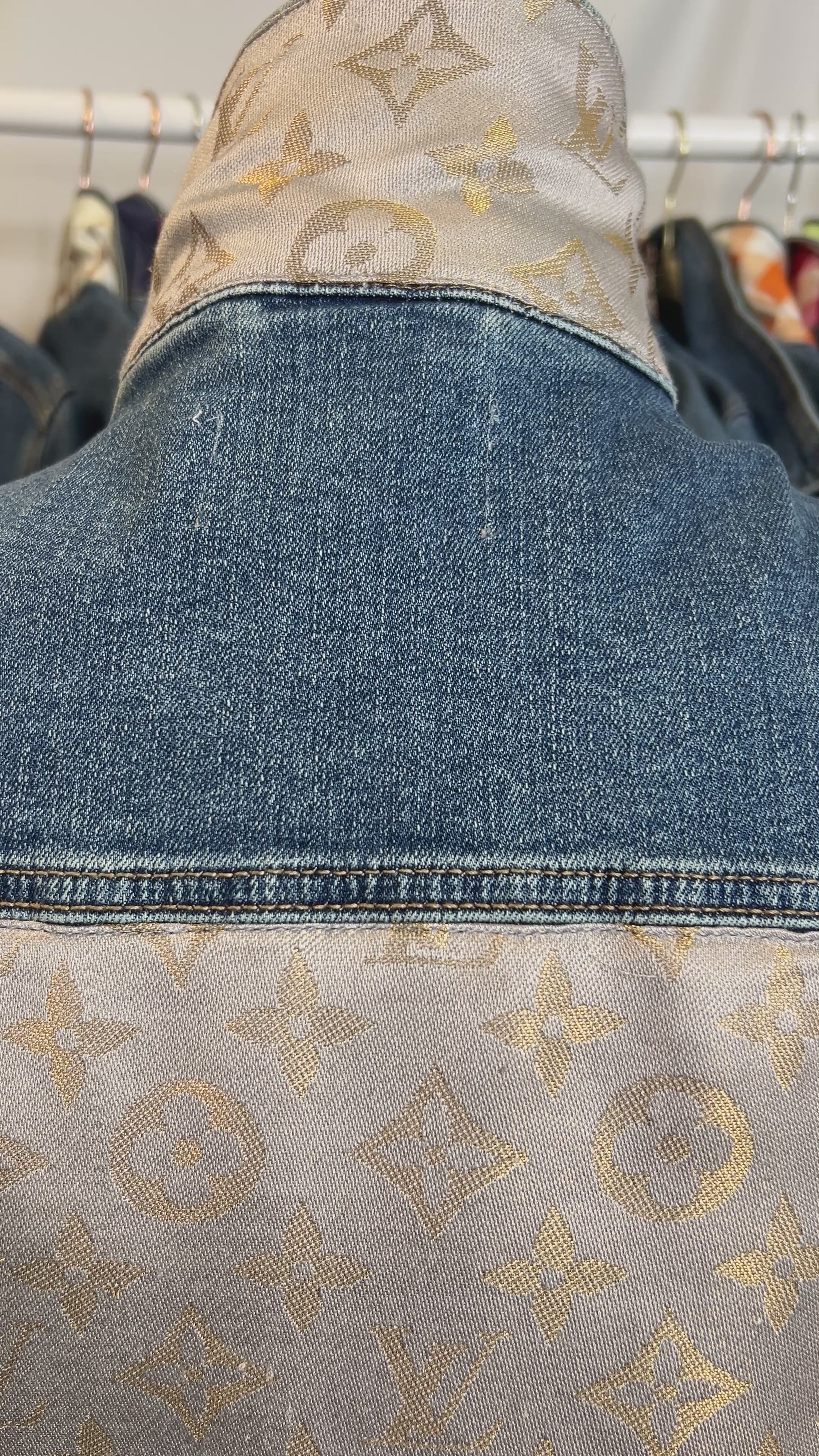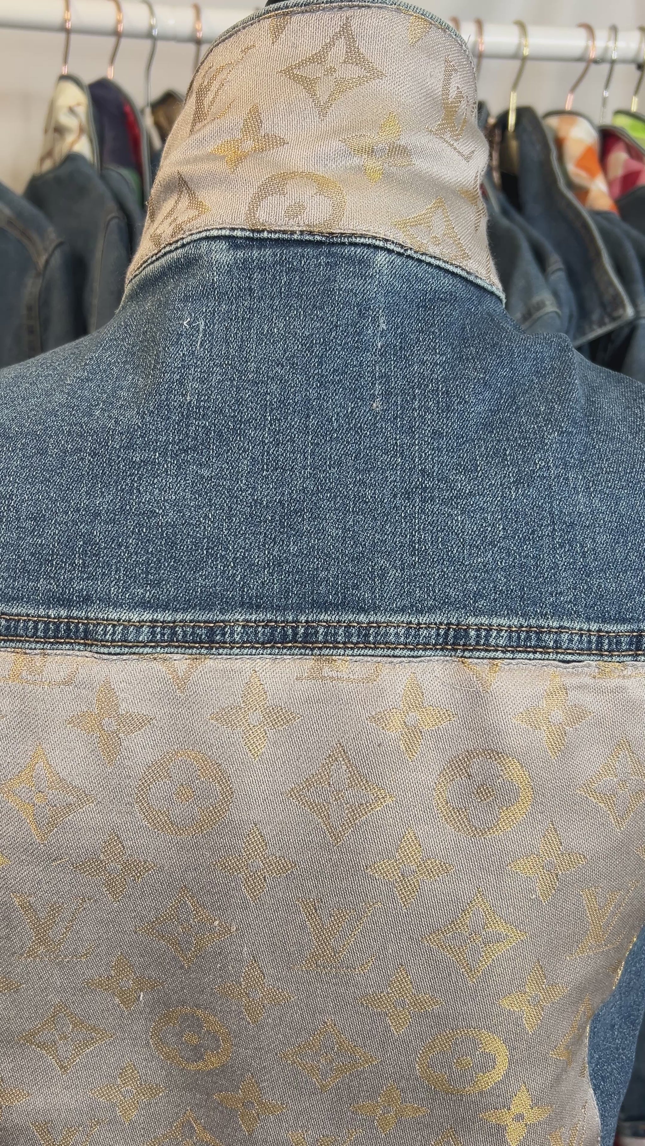 Designer Scarf Denim Jacket | Neutral LV Silk with Gold Thread